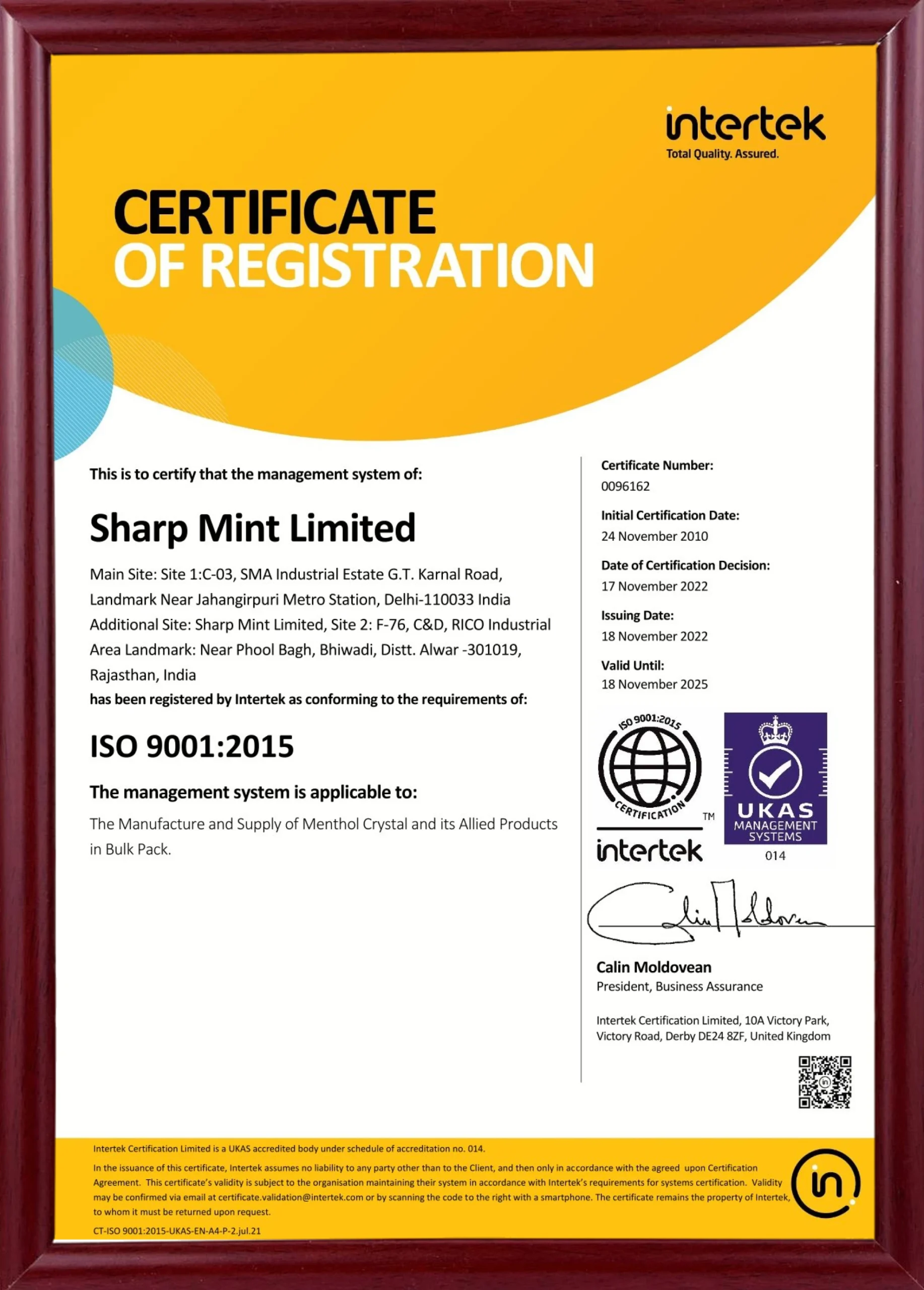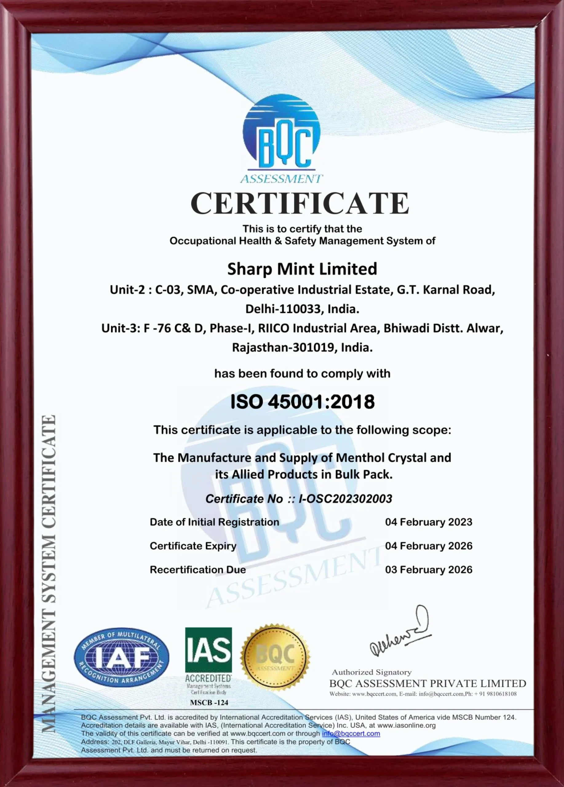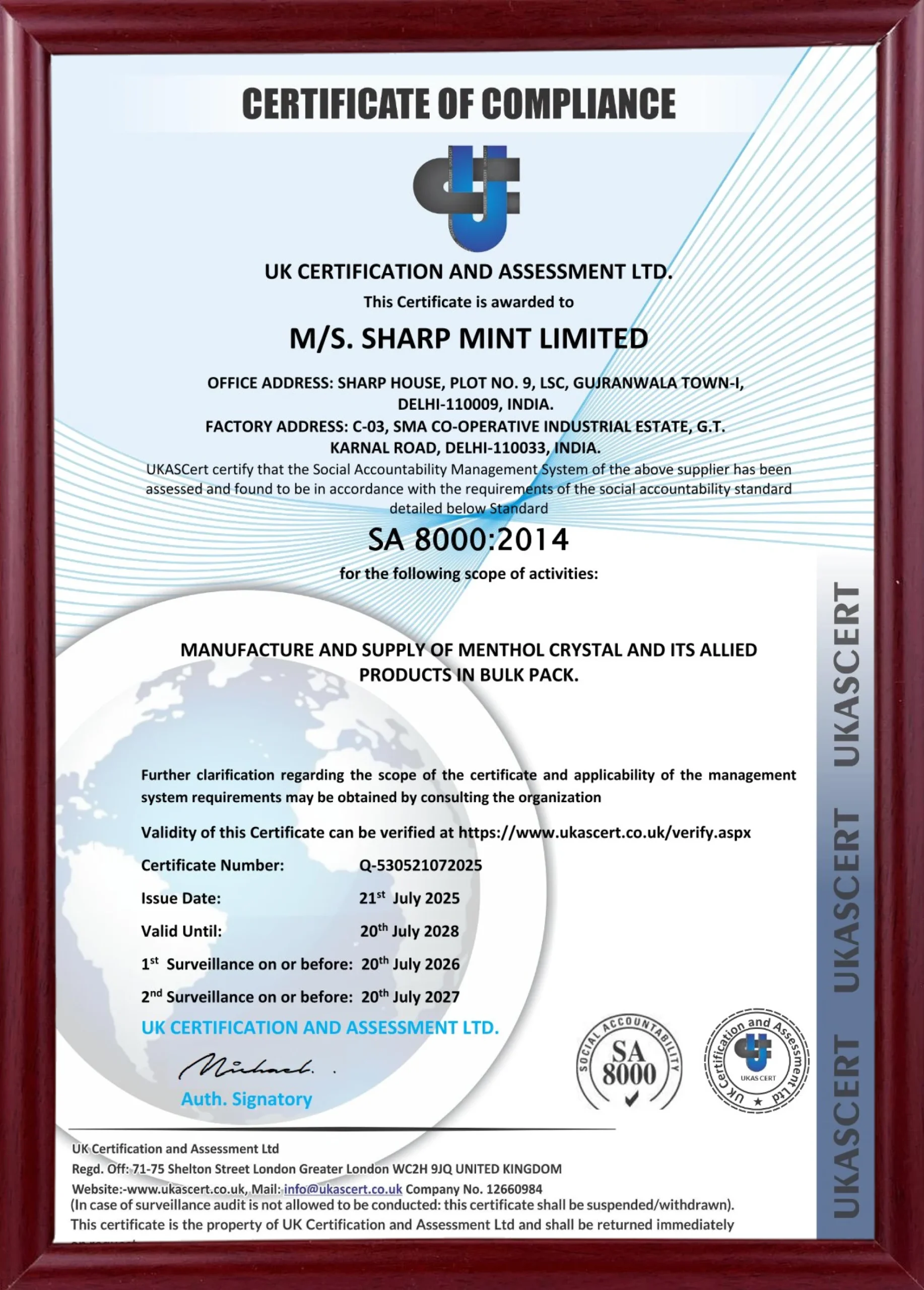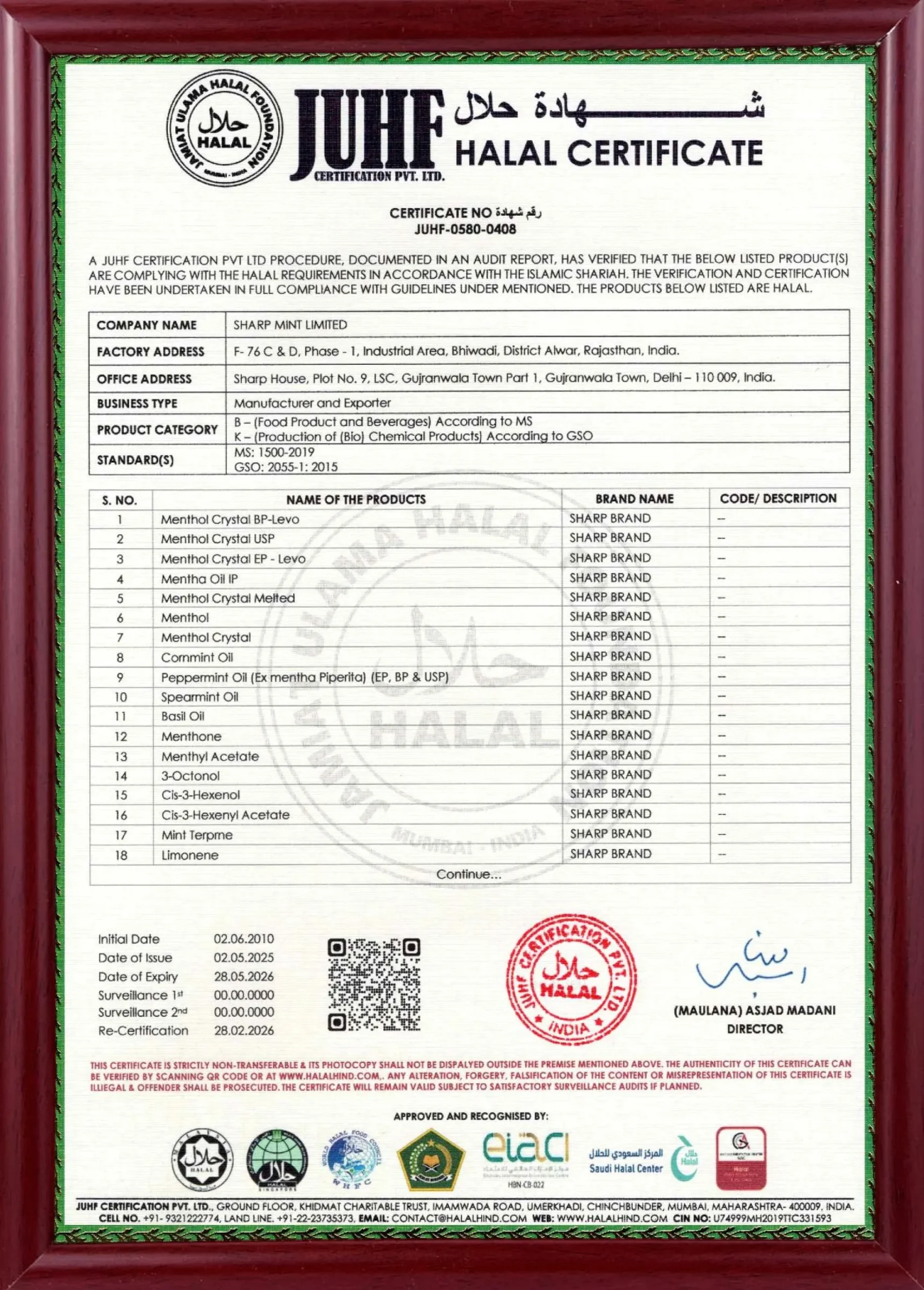 At Sharp Mint, quality, quantity, and consistency define our approach. We uphold the highest global standards in hygiene, safety, and manufacturing, ensuring our mint-based products meet strict regulatory and customer requirements for pharmaceutical and food applications. Our advanced technical and laboratory infrastructure guarantees precision, while stringent food defense and security measures protect against contamination, tampering, and threats.